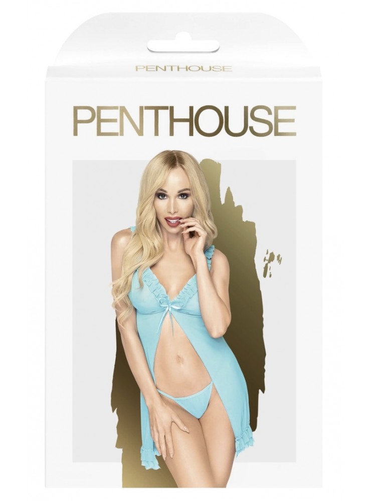 La notte diventa bollente con l’After Sunset di Penthouse! Un babydoll accattivante aperto sul davanti e con una scollatura profonda che esalta il seno, donando una forma provocante e seducente. Il babydoll è trasparente ed ha un décolleté arricchito da un fiocco in nastro lucente e da graziose rouches che ricoprono anche le spalline. Indossa il tanga coordinato e fai impazzire il tuo partner