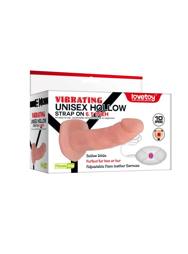 è un fallo strap on indossabile, ideale per sperimentare eccitanti scambi di ruolo e vivere momenti di coppia davvero intensi! Il fallo ha un design realistico con glande e venature definite ed è dotato di un interno cavo, adatto per essere usato sia dalla donna che dall’uomo. Potrai far vibrare il dildo con ben 10 velocità diverse tramite un comodo telecomando, per aggiungere ancora più piacere durante la penetrazione!